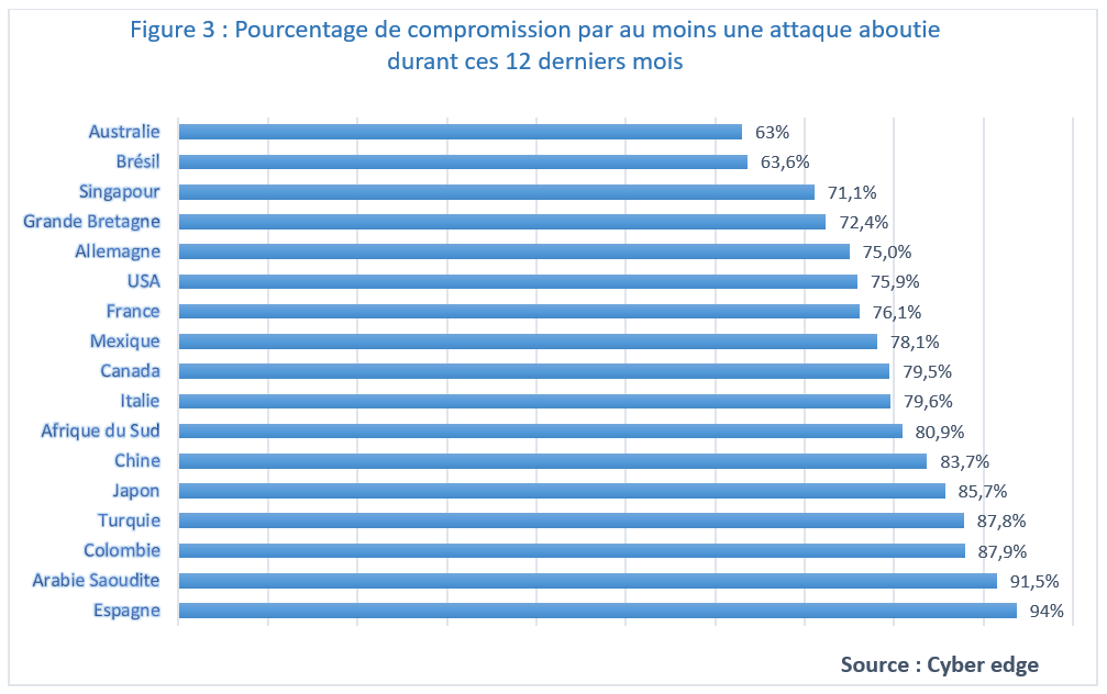 La figure 3 montre le pourcentage des attaques effectuées sur une période d’une année mondialement, par pays.