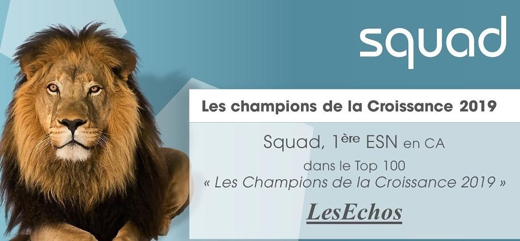 Bonne nouvelle côté business, Squad fait parti du (très sélect) top 100 dans le classement "Les Champions de la Croissance 2019" publié par LesEchos.