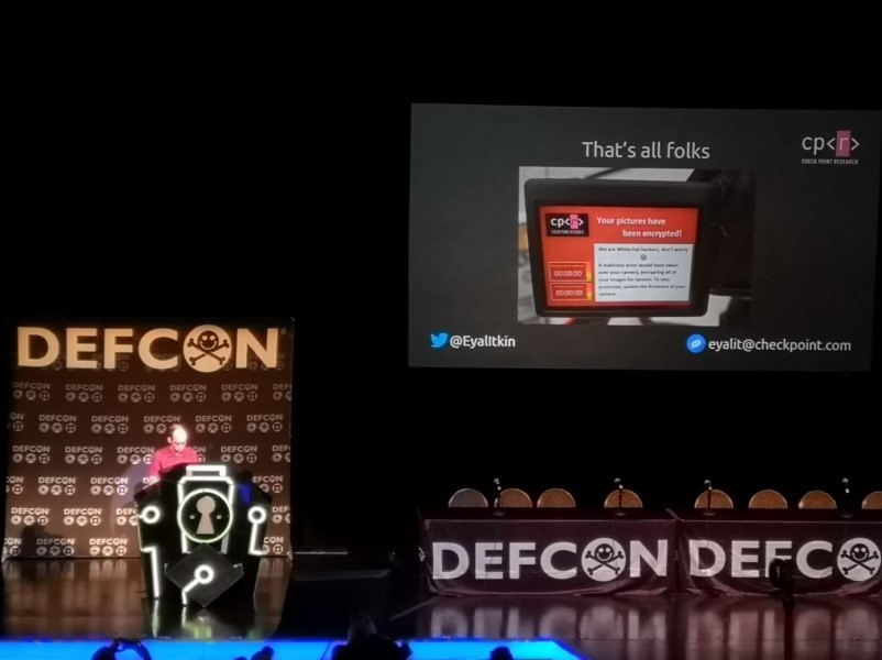 La démonstration est effectuée en vidéo, et effectivement, l’appareil fini par être locké, et les photos chiffrées. Autre détail précisé par l’intervenant, le protocole PTP est utilisé par les autres constructeurs (Nikon, Sony, etc…). La même faille est donc (potentiellement) exploitable.
