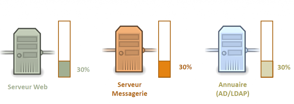 L’idée maîtresse derrière la virtualisation est de répartir l’utilisation du CPU et de la RAM d’une machine physique auprès de plusieurs services isolés au sein de machines virtuelles hébergées sur le même serveur physique. Il convient de préciser qu’on ne charge jamais une machine à 100% pour éviter toute panne.